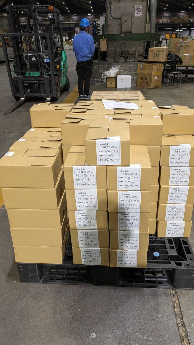 茨城圃場 大田市場へ出荷、納品