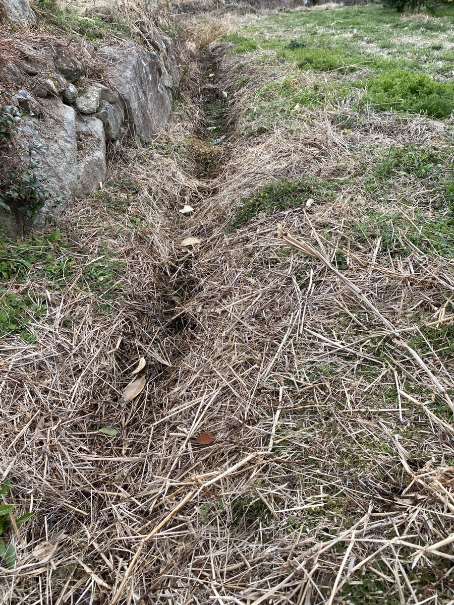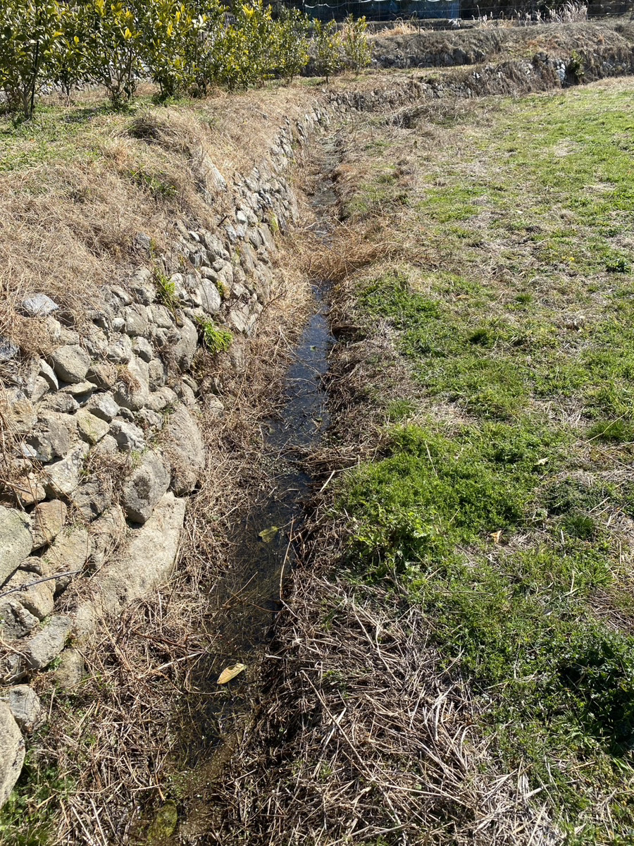 吉名圃場 水路整備前後 溜まっていた水が乾いている状況