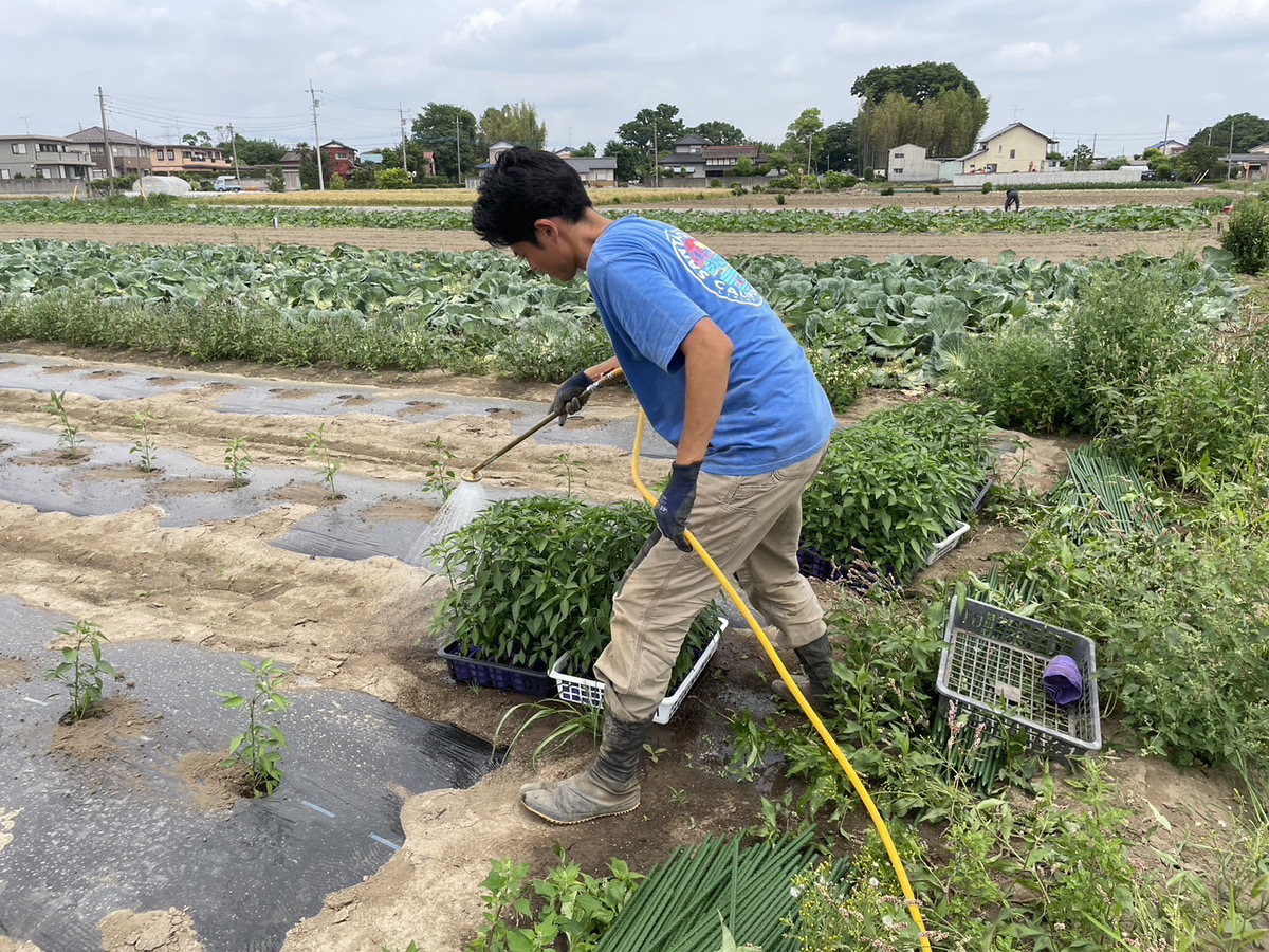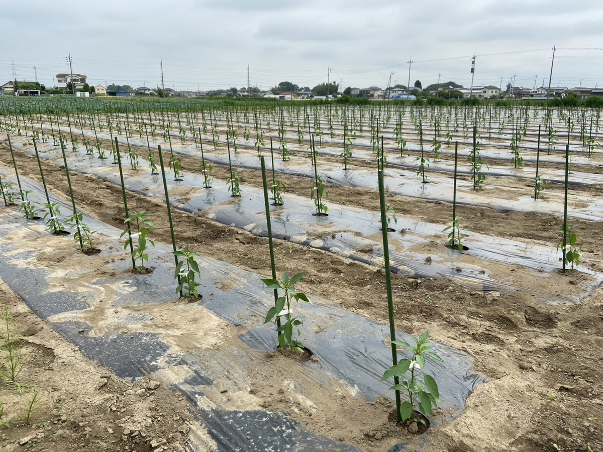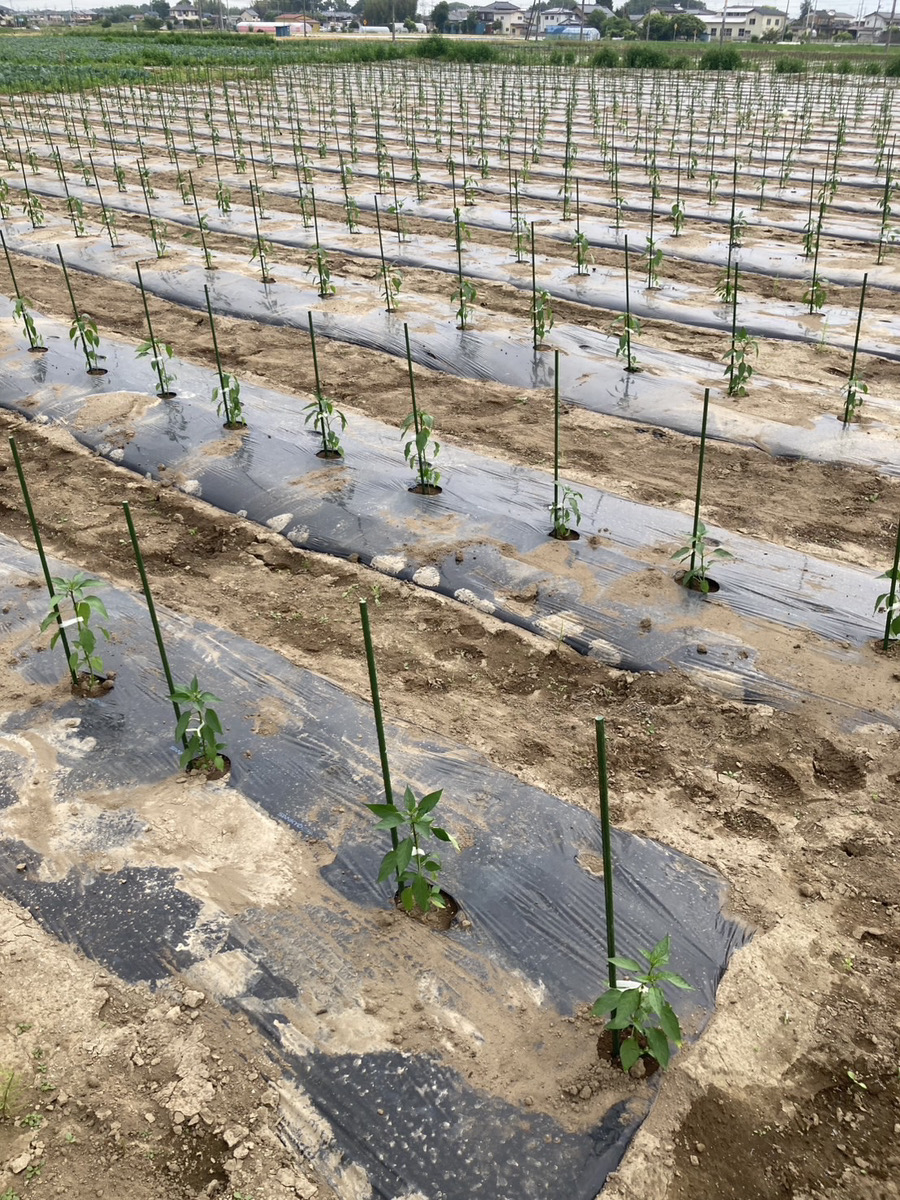 苗屋さんから茨城圃場へホットパラソル(唐辛子)の苗を搬入